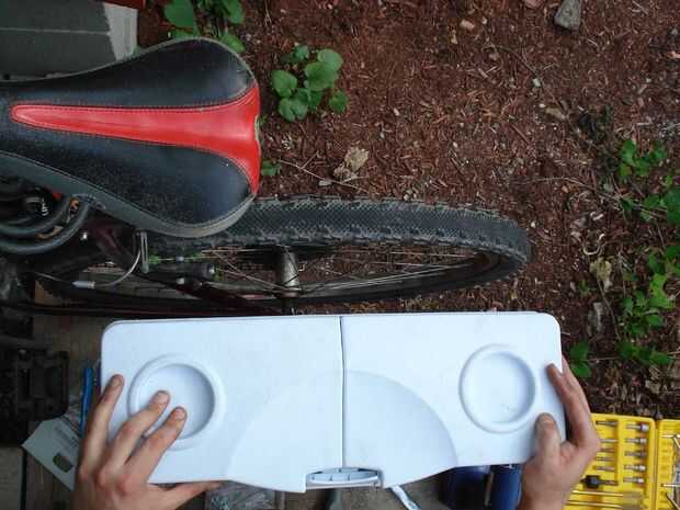 Ahora vas a averiguar donde el refrigerador va a ir. Ahora bien, idealmente, le pones que soporte en el centro de la nevera. Pero si haces eso, entonces va ser demasiado lejos hacia adelante y golpea su pie cada vez que el pedal. Así que puso su pie en el pedal y ver hasta va. Luego pídale a un amigo para marcar con un rotulador en la bicicleta hasta que el talón está. Le dan otra pulgada y plan de colocación de la nevera hay.