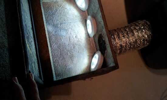 he pintado el interior del blanco de la caja a tomar como reflectante posible. I luego Velcroed pilas control remoto luces en la caja para dar un extraño brillo que sale de la niebla.