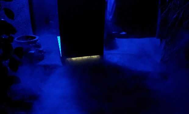 El resultado final fue un gran apoyo de piedra sepulcral mirando que también dispensa una tierra abrazando la niebla. No conseguí una buena foto del refrigerador sin la luz azul, pero creo que usted consigue la idea.
