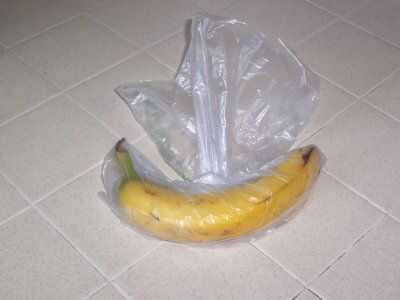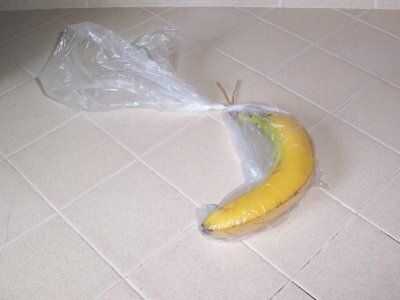 Ayudantes han sugerido utilizar una bolsa de almacenamiento de Ziplock (tm) como alternativa. En ese caso, extraer el aire y se ajusta la bolsa para el banana(s) con el bolso cerrado casi totalmente. Luego, terminar el proceso de cierre.
