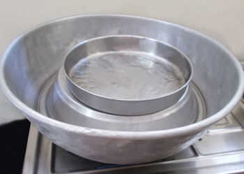 Tomar una sartén de fondo gruesa. llenarlo con el tazón de fuente de agua, suficiente para producir vapor.