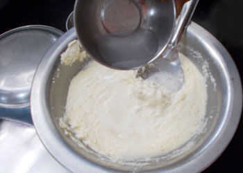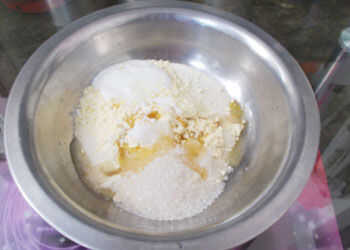 Añadir azúcar y aceite para el tazón de fuente, así.