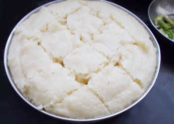 Después de que ha aumentado la Dhokla, sacar y se deja reposar durante 2-4 minutos.