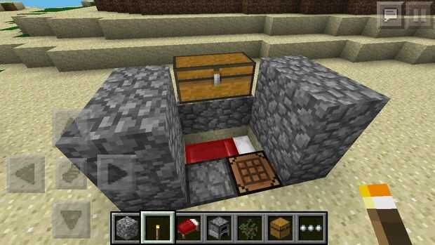 Lugar por las tres primeras paredes. Asegúrese de incluir el pecho en una de las paredes! El pecho actuará como su (especie de) ventana.
