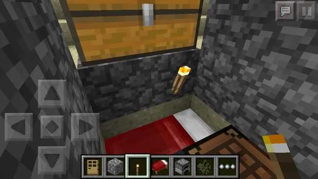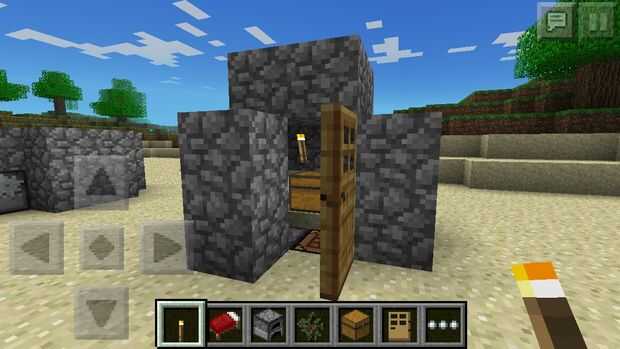 Añadir la última pared con la puerta (Asegúrese de que se coloca desde dentro) añadir un techo, poner abajo una antorcha dentro y se hacen! (P.d.: Asegúrese de que hay bloques están cubriendo el pecho.)