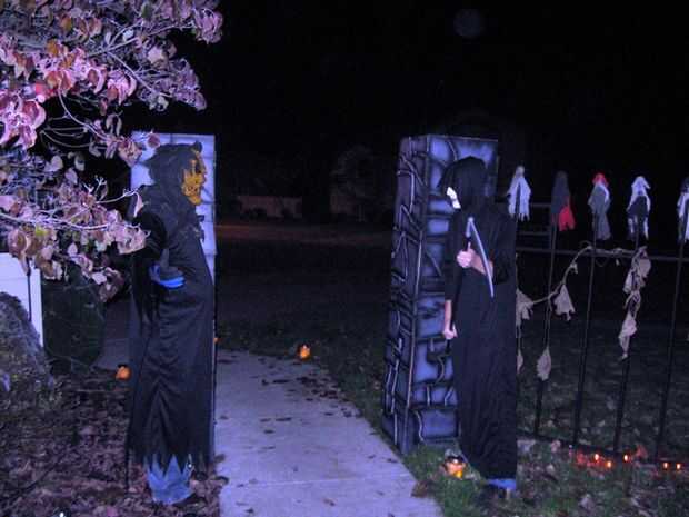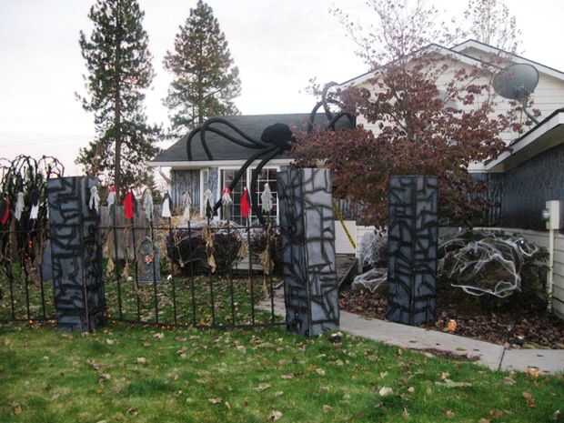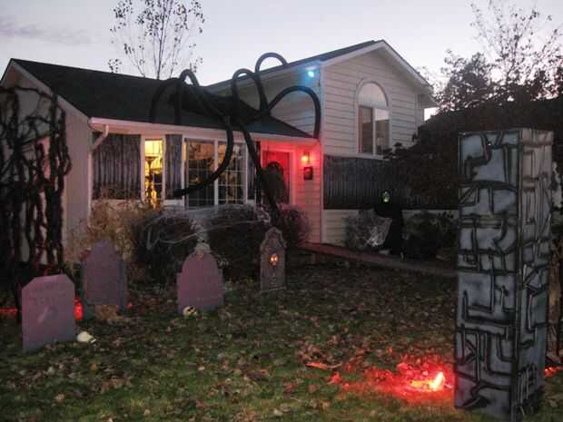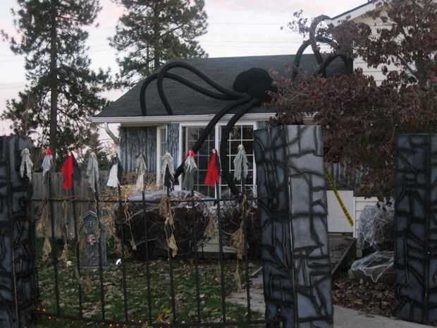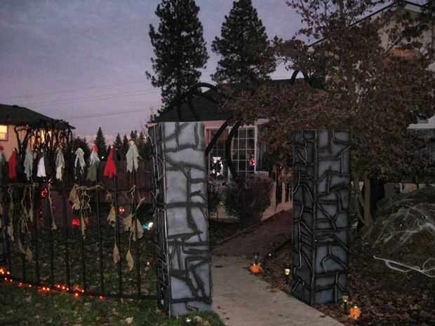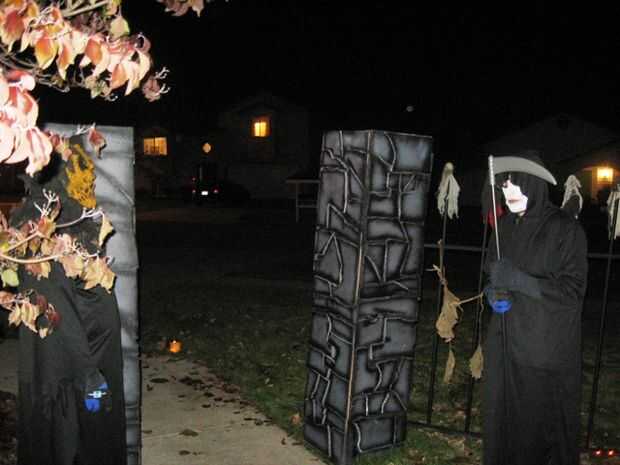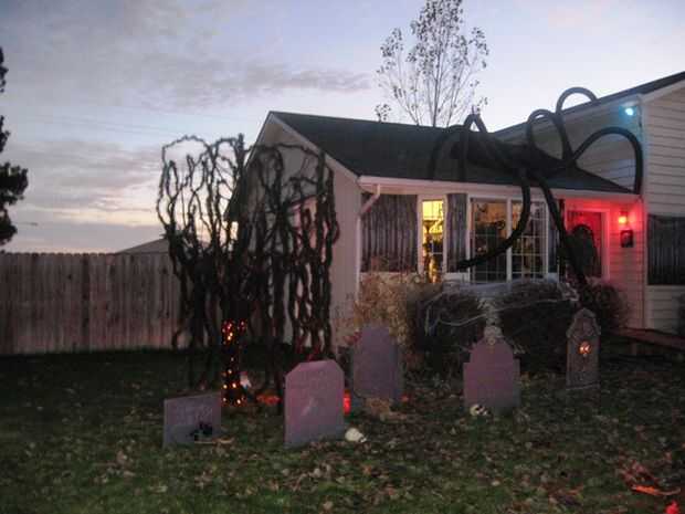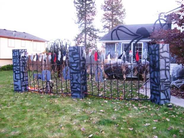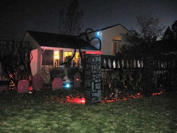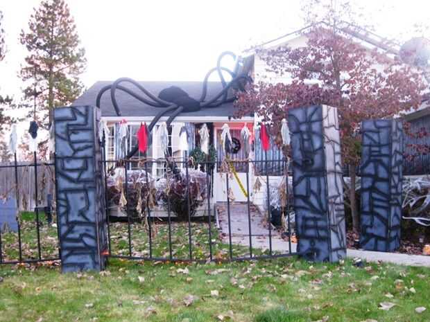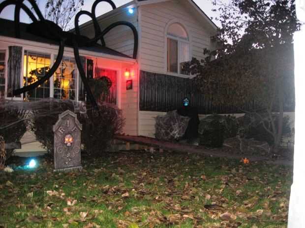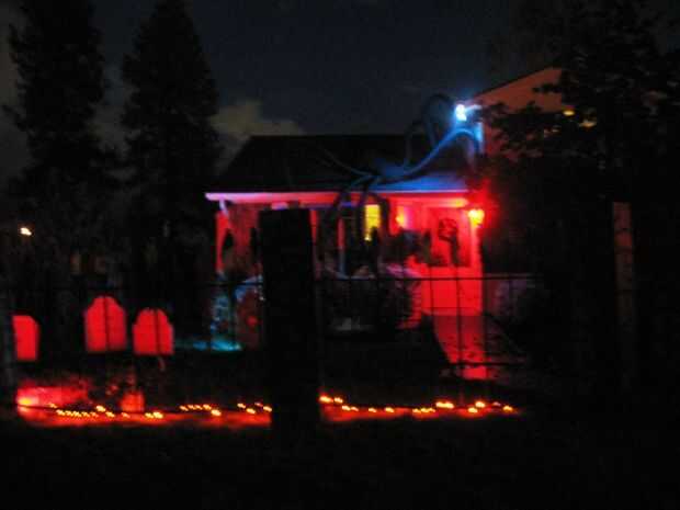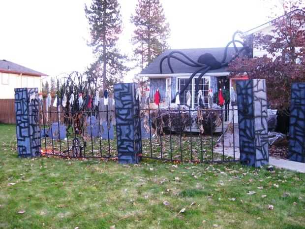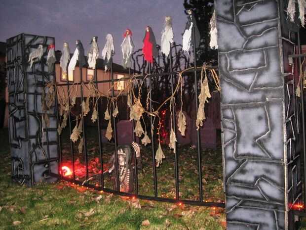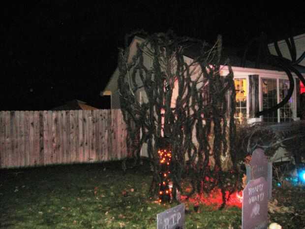 This is our Halloween Haunt for 2009. Nuevos apoyos que yo y mi Sweetieconstructed este año incluyeron la cerca del cementerio y pilares, spookytree,  lápidas y araña gigante. Las lápidas en que utilicé un dremil cortan la redacción de la espuma de que fueron construidos. Onetombstone es solo una simple cruz negra que fue a partir de dos piezas deembalajes de una caja de lavadora/secadora. Los pilares donde hecho con hojas ofplywood, las hojas de la misma espuma utilizado para lápidas, negro y grayspray pintura, adhesivo para fijar la espuma al azar cortada al aspecto likestones y una escoria cuadra dentro pesan para evitar anyonerunning en ellos y su depósito sobre. El cerco fue hecho de 2by2 boardsand tubo de pvc que estaba todo pintado de negro. Los muertos de la vid weavedthrough que la esgrima era de mis calabazas este año. El spookytree era un árbol muerto que hemos dejado en nuestra yarda para más de un año. IWILL finalmente se corte este año con todas sus decorationsattached y luego tienda para persigue a. El árbol era paintedblack con pintura en aerosol; He utilizado cinco, setenta y cinco pies rodillos garland ofChristmas que rocíe pintados de negro. El tronco de la waswrapped del árbol con la guirnalda negra, las extremidades en la parte superior de la banda de metal de weused árbol que se utiliza en grandes cajas de envío mysweetie encontrado aherrumbrar hacia fuera en el bosque donde alguien había lanzado le. La banda fue cortada en diferentes longitudes (6 piezas) andattached a Thea muy superior de las extremidades para crear un árbol de sauce (efecto de caída) que luego pintada de negro y une el blackgarland a las correas de metal y a todos los miembros creando un árbol de cementerio de sauce deadspooky. Se ha añadido una cadena de luces de LED naranja para el tronco. Cuerpo de la araña gigante fue hecho de madera contrachapada y chickenwire con grapas pesadas. Una pequeña cadena de púrpura lightswere LED agrupados y zip atado en el frente para los ojos. El wholebody fue cubierto con un pedazo negro borroso. El spider'slegs fueron construidos de la tubería de desagüe. El tubo de drenaje fue cutat sobre un pie y luego atado a la madera contrachapada, de esa manera el 9 feetof cada pierna puede ser unido para mostrar y quitar fácilmente para el almacenaje. Las luces naranja y negro encima de la pasarela son viejas conservas tarros recubrieron papel y sostenido con una banda elástica. Candlesinside de té sin llama luz les. El enfriador de la niebla hizo de una caja de plástico amarillo catlitter (pintados de negro) que había sido cortada para hacer un aporte y, provista de pvc tubería, alambre de pollo en capas de hielo para sentarse, smalldrainage agujeros en la parte inferior, que nuestra pequeña tienda compró a fogger blewfog en y para arriba y fríos para crear un mayor efecto de groundfog. Es nuestro refugio yarda 09'. Nos divertimos mucho creando allour accesorios nuevo! Montón de grandes ideas de la página de Instructables! Wecan't esperar para empezar a trabajar en algunas nuevas ideas para el próximo año! HappyHalloween everyThis es nuestro rondan Halloween 2009. Nuevos apoyos que yo y mi amorcito construidos este año incluyeron cerca del cementerio y pilares, árbol spooky, lápidas y araña gigante. Las lápidas solía un dremil en recortar el texto de la espuma de que fueron construidos. Una lápida es sólo una simple cruz negra que era a partir de dos piezas de embalaje de una caja de lavadora/secadora. Los pilares donde hecho con láminas de madera contrachapada, láminas de la misma espuma utilizado para lápidas, negro y gris pintura de aerosol, pegamento para fijar la espuma al azar cortada para parecerse a piedras y un bloque interior para pesar para evitar que cualquier persona corriendo hacia ellos y volcarse. El cerco fue hecho de 2by2 placas y tubo de pvc que estaba todo pintado de negro. La vid muerta que teje a través de la esgrima era de mis calabazas este año. El misterioso árbol era un árbol muerto que hemos dejado en nuestra yarda para más de un año. Yo se ser finalmente cortarlo abajo este año con todas sus decoraciones adjuntarán y luego almacenan para sitios frecuentados por venir. El árbol fue pintado negro con pintura en aerosol; He utilizado cinco, setenta y cinco pies los rollos de la guirnalda de la Navidad que rocíe pintados de negro. El tronco del árbol estaba envuelta con la guirnalda negra, las extremidades en la parte superior del árbol que utiliza fleje de metal que se utiliza en grandes cajas que mi amorcito encontrado aherrumbrar hacia fuera en el bosque donde alguien había lanzado lo del envío. La banda fue cortada en diferentes longitudes (6 piezas) y adjunta a la parte superior de las extremidades para crear un árbol de sauce (efecto de caída) que luego pintada de negro y une la guirnalda negra a las correas de metal y a todos los miembros creando un árbol de sauce muerto espeluznante cementerio. Se ha añadido una cadena de luces de LED naranja para el tronco. Cuerpo de la araña gigante fue hecho de madera y alambre de pollo con grapas pesadas. Fueron agrupados una pequeña cadena de luces de color púrpura y zip atado en el frente para los ojos. El cuerpo entero fue cubierto con un pedazo negro borroso. Las patas de la araña fueron construidas de la tubería de desagüe. El tubo de drenaje fue cortado en un pie y luego atado a la madera contrachapada, así los 9 pies de cada pata puede ser Unidos para mostrar y quitar fácilmente para el almacenaje. Las luces naranja y negro encima de la pasarela son viejas conservas tarros cubiertos con papel de seda y sostenido con una banda elástica. Les velas de té sin llama luz interior. El enfriador de la niebla hizo de una caja de litera de gato amarillo plástico (pintados de negro) que había sido cortada para hacer un aporte y, provista de pvc tubería, alambre de pollo en capas de hielo para sentarse, orificios de drena