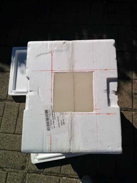 En un extremo de la caja, usa tu regla y escuadra para marcar un cuadrado de aproximadamente 5-1/2 pulgadas. Asegúrese de que es una pulgada o dos lejos de la tierra. Esto es importante para mantener la ropa de cama y agua. Este recorte con su cuchillo de filete inseparable cajón de basura.