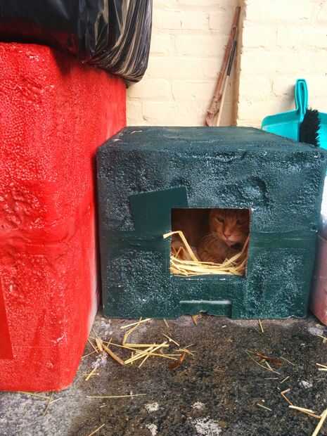 Ahora para la ropa de cama... Como seres humanos, nuestro instinto es ofrecer almohadas y mantas como dormimos con. Tenga en cuenta que los gatos no tienen los pulgares para levantar las tapas. La mayoría de los expertos materiales que he leido recomienda usar paja, y estoy de acuerdo. Mi ferals pasó un par de días subir sus narices en mis cajas de pescado, pero el minuto de que poner la paja, te juro que pensaban que una nueva "W" sólo había subido en el barrio. Ir a un vivero y comprar un fardo de paja (no hay) y algunos en la materia. Muchas tiendas de artesanía y tiendas de comestibles también pueden ofrecer fardos de paja cerca de Halloween para decorar.