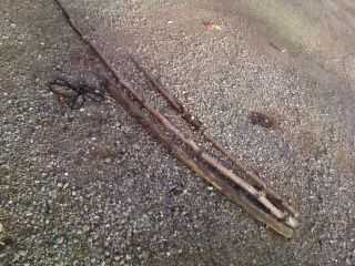 usaba una poste de centro larga un poco más alta que mi mano estirada encima de mi cabeza. Esto hace que el refugio tiempo suficiente para cubrirlo. Los polos de 2 laterales son aproximadamente mi altura en la parte superior de mi cabeza. He mostrado cordones pero cuerda o paracord funciona también.