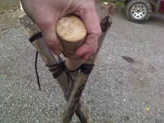 Estos pasos se pueden repetir en el otro extremo de la cumbrera para construir una choza en forma de tienda en lugar de un solo un refugio de tipo tienda de campaña como se muestra.
