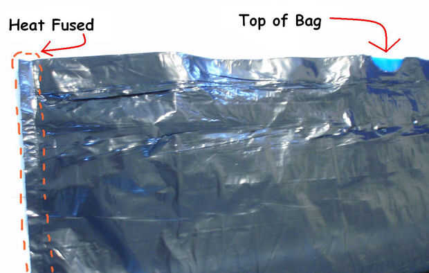 Note que los lados de la bolsa de basura son fusionados con el calor. El lazo está anclado a ambos lados por este sello de calor. Usted necesitará al lado el sello de calor, no a través de él.