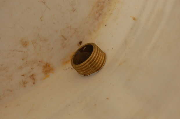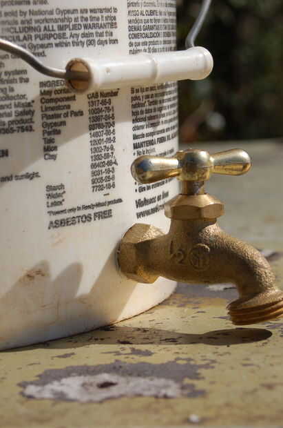 La manguera sólo debe caber en el agujero que has hecho. Manténgalo como perpendicular a la superficie del cubo y atorníllelo en el cubo. Usted puede ser tentado a hacer el agujero más grande, pero sí debe enrosque en el cubo. Para el lugar de prueba de fugas agregado un cordón de silicona alrededor de la manguera en la parte exterior del cubo antes de atornillarlo completamente. Atornille la boquilla el resto del camino, hasta el pico apunte hacia abajo.