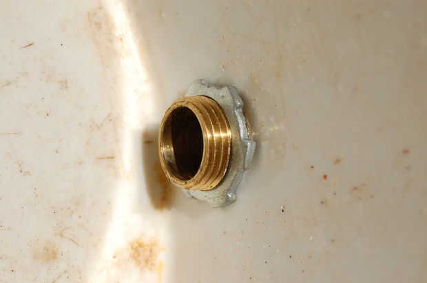 En este punto, el pico debe ser firmemente en su lugar, pero dado que esto va a ser movido alrededor de algún refuerzo adicional se recomienda. En el interior de la cubeta colocar la contratuerca conduit en la manguera y apriete.