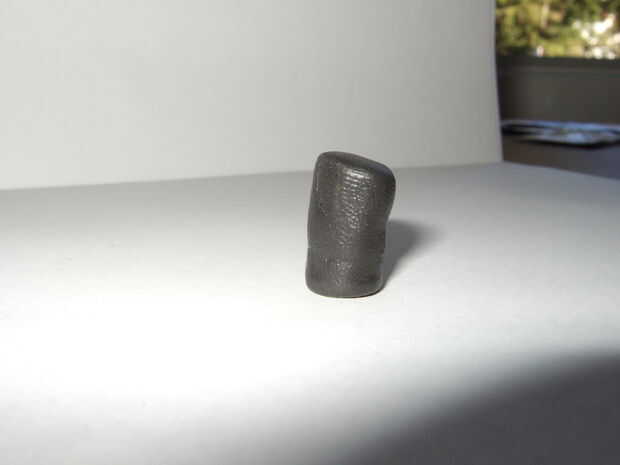 La parte más difícil es incluso hasta la forma de cilindro sin deshacer lo que has hecho ya. Puede ser muy frustrante hacer "un toque" para hacer "perfecto" sólo para descubrir el imán, o dejar un hueco enorme, o hacer Top-Heavy (ver imagen). Como lo descubrió, un cilindro "perfecto" es casi imposible, y llegar a un punto donde usted tiene que llamar un día antes de tus 30 minutos y el Sugru comienza curado para siempre de esa manera.