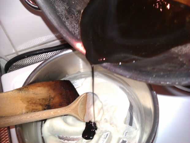 Paso 7: tome dos ollas del fuego y mezclar el gel de gelatina/de la harina con el jarabe de regaliz.