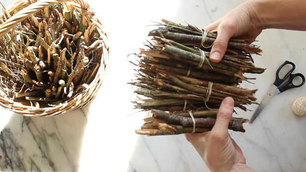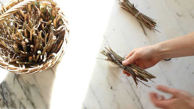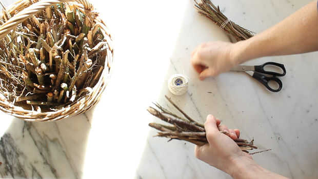 Me parece un poco ridículo escribir. Es bastante autoexplicativo. Romper sus palos al tamaño correcto, les paquete y atar con su cadena.