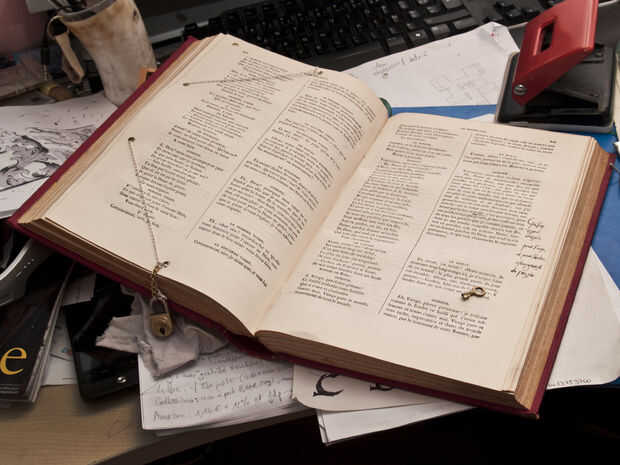 El ambigram tiene un número que corresponde a una página, que contiene una pequeña frase o verso, y apunta a otra página, etc. hasta que todos los versículos se encuentran y forman el poema. El poema contiene pistas acerca de dónde se oculta la clave en el libro. Encuentra la clave, en la tapa, abre el candado, que cierra las páginas de dos centro (contiene los blasones dibujados) con la cadena de plata. Entre las páginas, en una bolsa pequeña de papel, se encuentra el colgante Fleur, a través del cual la cadena debe ser roscada. A lo largo de las páginas del libro siguen siendo todas las explicaciones acerca de los símbolos dibujados en los blasones.
