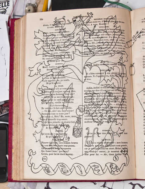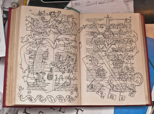 Que enumerar todos los rasgos, entonces todos los símbolos. Luego cruzaron los resultados y había hecho mi elección entre ellos, ya que no pude incluir por falta de lugar. Eligió las diferentes partes según su significado, por consiguiente les encuentra y dibujé. Primera photoshop áspera, luego lápiz y tinta.