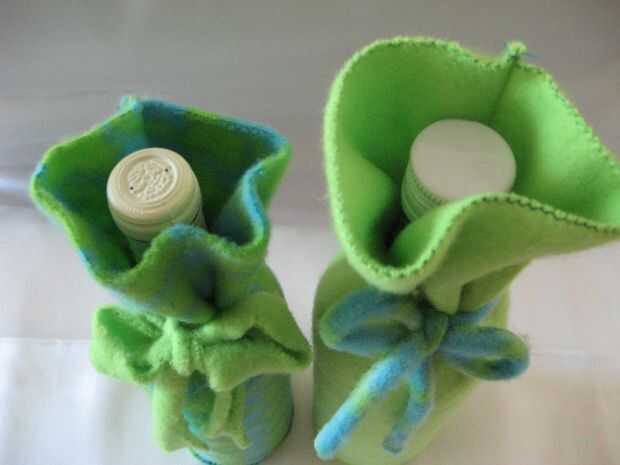 Puede añadir una puntada en el borde superior de la bolsa de la botella. Hice una pequeña puntada de zig-zag en la parte superior de una de mis maletas. También podría hacer una puntada de manta con un hilo de bordado a mano. Esto puede ayudar a ocultar un borde raggedy, si el corte no era muy constante.