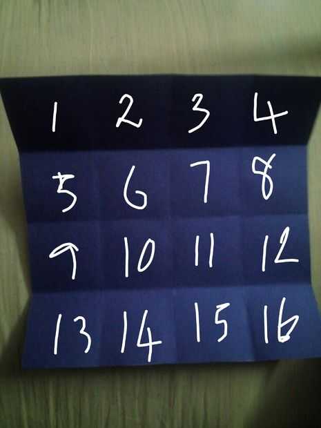Dobla la hoja cuadrada tal que hay dieciséis cajas