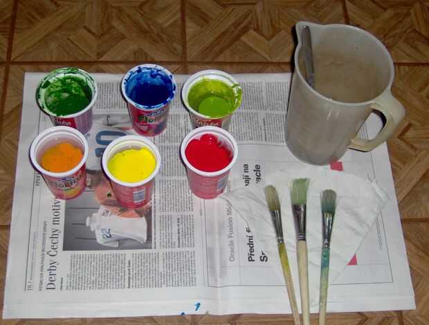 -pequeñas macetas para poner pinturas en (e.g. potes de yogur)