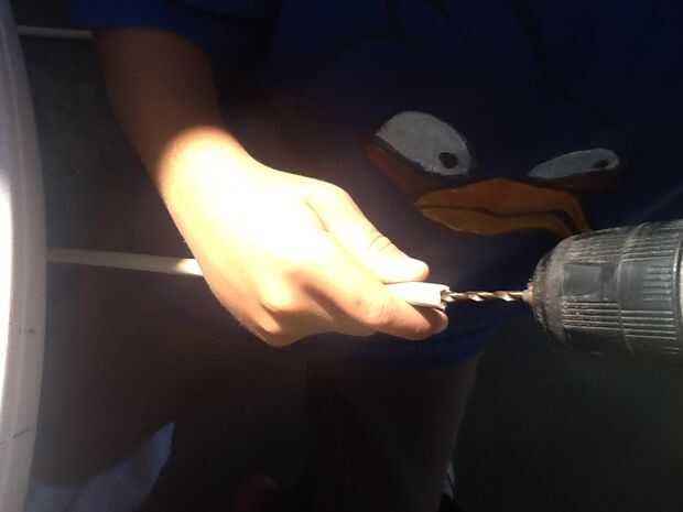 Preparan el taquete para recibir el tornillo de goma o martillo en plástico (por ejemplo, para taburetes de barra) por taladrar un agujero piloto.
