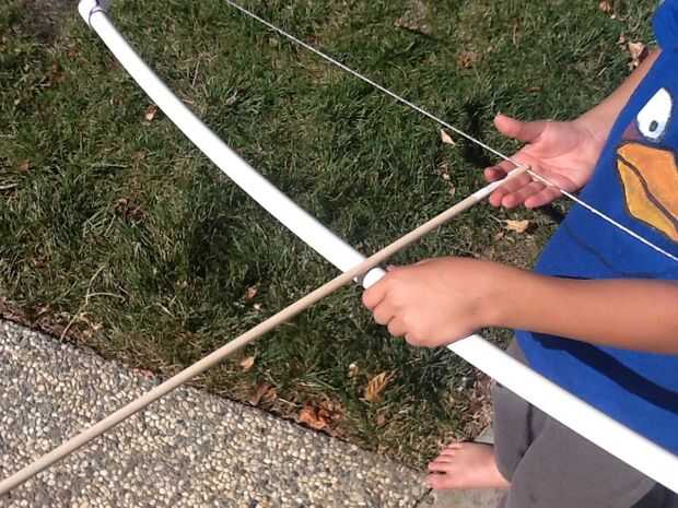 Sólo les muestro cómo cargar una flecha (ver foto) y luego que lo hagan el resto. Dependiendo de la longitud, tensión y peso de las flechas, viajan 20-50 pies, convenientes para la diversión de tiro con arco del patio trasero!