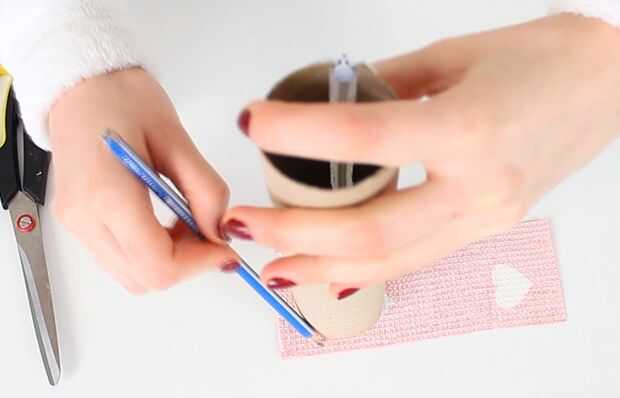 Regalo de día de San Valentín DIY / portalápices reciclado tubos de cartón NO SEW (2 / 5 paso)