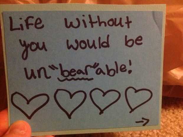 Luego agarrar algo para escribir con y para escribir "La vida sin ti sería un" oso "capaz de!