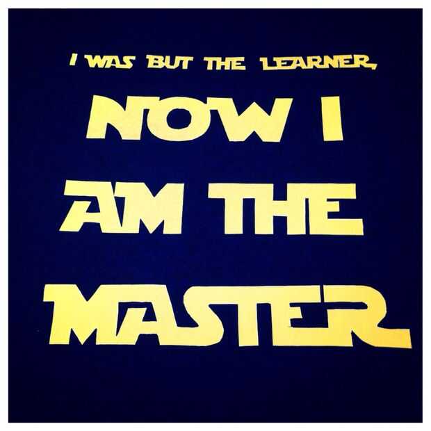 Mi hermana era graduarse con una maestría así que quería hacerle el regalo de graduación perfecta. Había rastreado internet buscando regalos de graduación de Master cool, pero dejó mucho que desear. Después me topé con la frase, "estaba pero el estudiante, ahora soy el maestro," yo sabía que tenía que hacer una camiseta de Star Wars fresca para ella. Ambos celebran sus logros y apeló a sus intereses nerd. Esperamos disfrute y la fuerza esté con vosotros!