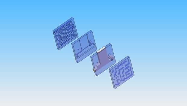 Hay dos laberintos en esto; uno en la parte superior y otro en la parte inferior. El mármol se introduce en el laberinto superior a través de un orificio en la parte superior, luego el mármol debe viajar a través del primer laberinto, donde la salida del primer laberinto (por arriba) es la entrada al laberinto de la parte inferior. Una vez terminado el laberinto de la parte inferior, el mármol cae entre lo que yo llamo la cerradura y llave. La cerradura y llave son dos pedazos de madera que no tiene ya conectado sin el mármol, el mármol finaliza la conexión y permite la llave accionar la cerradura, abrir el compartimiento.