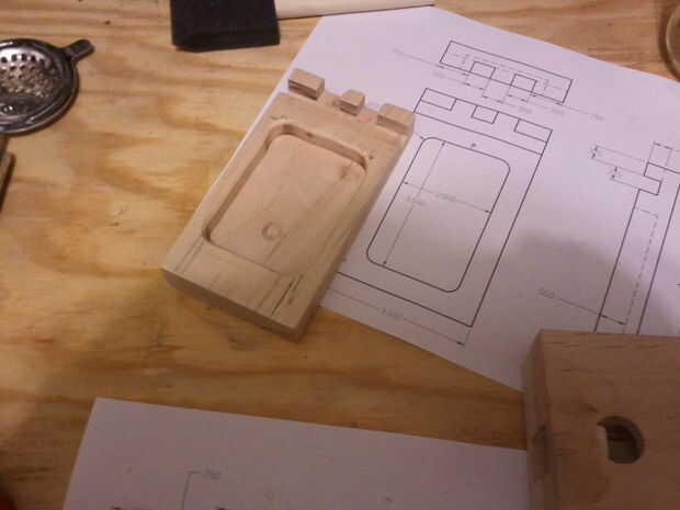 Una vez que los dientes fueron cortados, ahuecado el bolsillo. En mi diseño, había asignado durante sólo 1/2" de profundidad ya que el espesor del material es solamente 3/4". Puesto que el botín era Smarties, casi encajaba. Tuve que volver a cortar más adelante para caber las golosinas dentro. Por lo general, no me gusta tomar madera a menos de 1/4" de espesor, pero el objetivo de este proyecto fue ocultar Smarties dentro...
