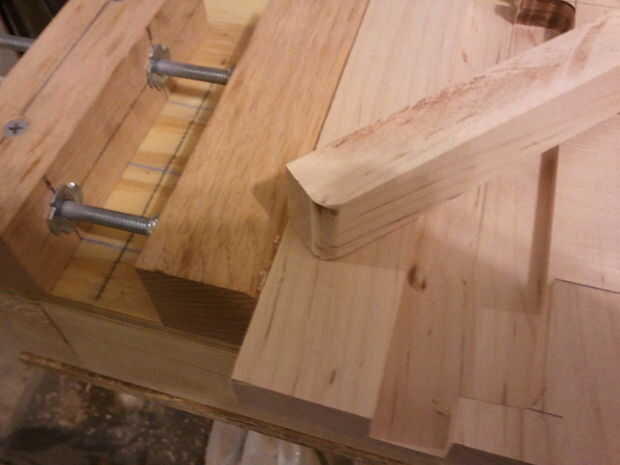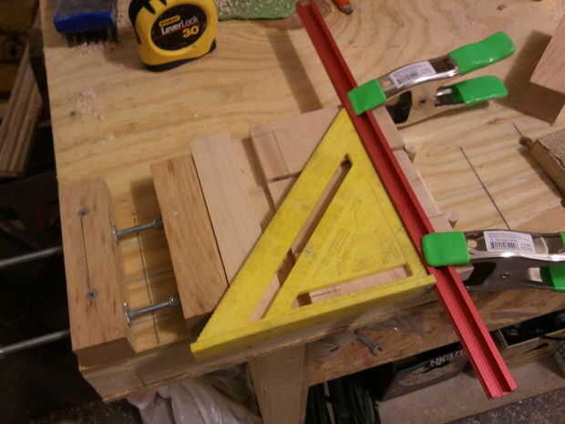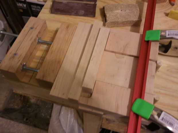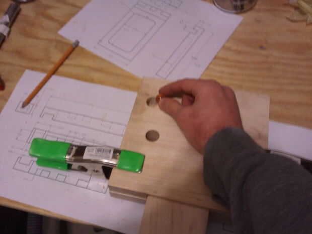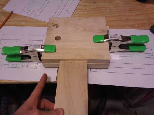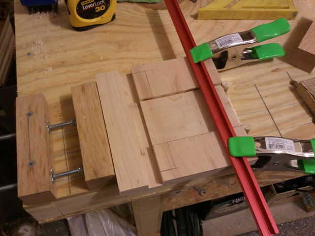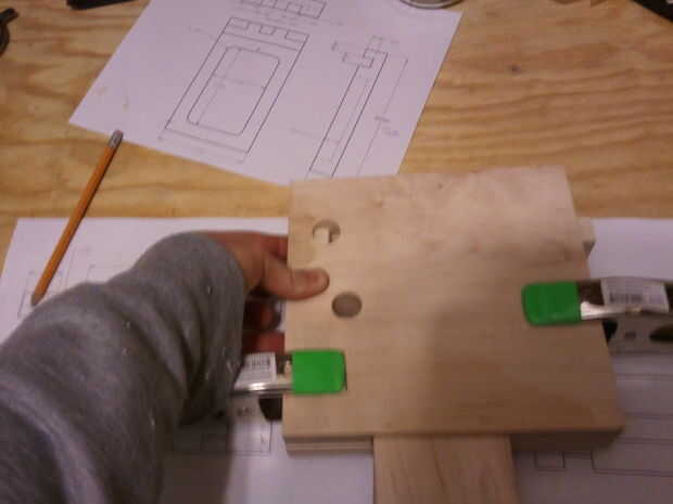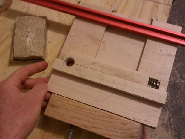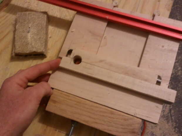 El cuerpo principal se compone de dos 7.5" tableros cuadrados de 3/4" espesor de arce. El router se utilizó para esta operación. Montón de corte. Empecé con la pista para el área de compartimiento. Se muestra en la figura primera, bajo la barra roja y abrazaderas. El siguiente paso fue cortar la pista para la clave, un dado simple, entonces el área de la cerradura.