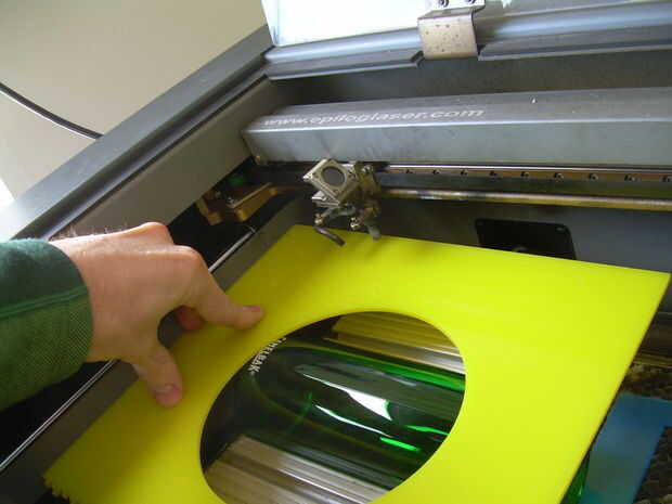 Es bastante fácil si estás algo familiarizado con un cortador láser. Lo no he utilizado mucho, así que tardé unos 5 minutos para alguien que me mostrara qué hacer. El concepto básico es que diseño su nombre con cualquier máquina de dibujo está configurado para el cortador del laser. Medida que es desde la parte superior izquierda, luego hacer las mismas medidas sobre el programa de dibujo y grabado de golpe. Puede usar alguna cartulina para pruebas para asegurarse de que va a estar en el lugar correcto.
