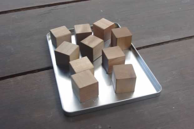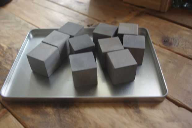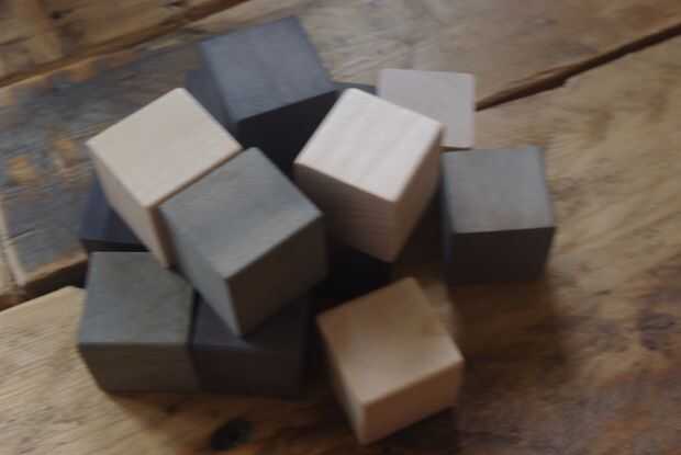 Ahora cuando todos son agradable y seco, agarra su madera gris mezcla de tinción y sumergir los cubos. Luego debe establecerse para secar por unas horas.
