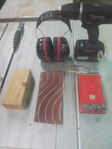 todo lo que necesita es un pedazo de madera una sierra lija bamboe brochetas de un protección de taladro y el oído
