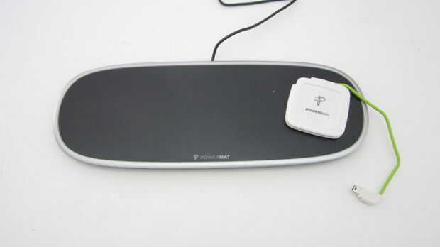 Estoy utilizando el cargador inductivo de PowerMat. En este modelo el emisor es una placa delgada que el receptor se sienta en. El receptor es un disco pequeño con un mini cable USB que se enchufa en el dispositivo que desea cargar. Cuando el transmisor detecta la presencia de una unidad receptora, automáticamente se enciende y comienza el envío de energía al receptor.