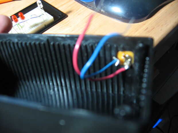 Perfore un agujero en el caso donde usted quiere poner a la toma del adaptador de CA. Lo pongo en la parte inferior izquierda hasta