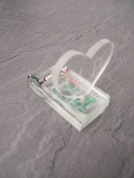 El resultado es un objeto poco hecho a sí mismo que muestra las iniciales de dos personas en el corazón. Tipo de parece un hologramm así su realmente moderno.