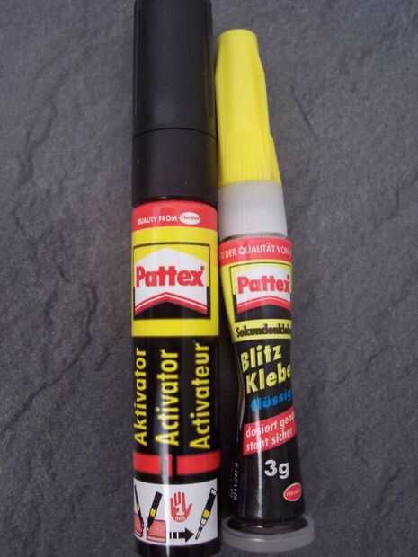 Mi glew tiene dos componentes, uno para preparar el plástico y en realidad glew piezas juntos. Después de presionar las partes juntos durante unos 10 segundos, se quedan en su lugar. Realmente secada a través probablemente después de un rato largo.