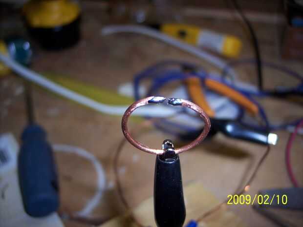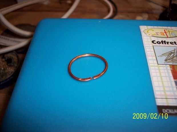 - Doblar el alambre de cobre alrededor de un tubo de acero y corte para adaptarse a los dedos -Los extremos del martillo un poco. Pulir con lana de acero. -La inmersión con soldadura para la Asamblea fácil más tarde.