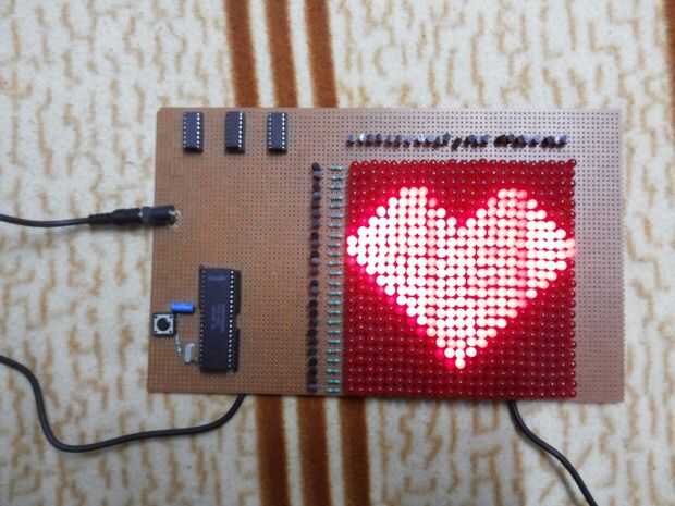 Aquí he utilizado el concepto de exhibición de LED de desplazamiento para hacer el regalo de San Valentín bonita. Patrón diferente se puede Visualiza en la pantalla al cambiar el código en el microcontrolador