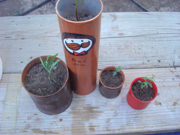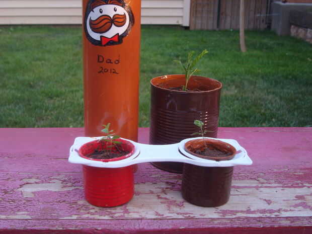 Sacar suciedad en una bolsa de plástico y colocar en la lata de Pringles. Esto hará más fácil de limpiar utilizando para otra cosa después de plantado el árbol.