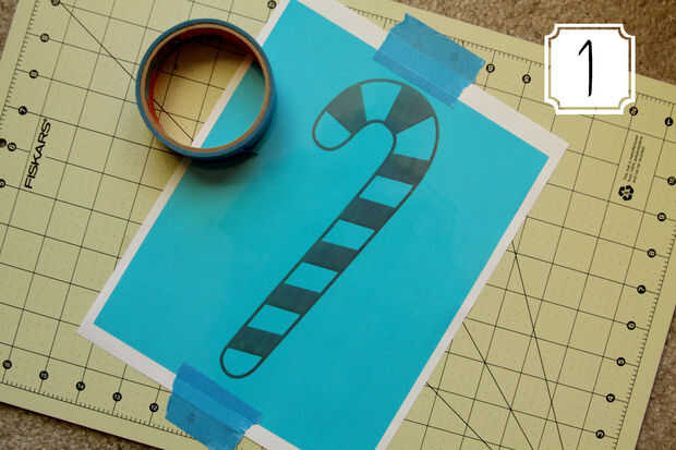 Centro de la imagen en la plantilla de stencil. Cinta a la estera que le mueva mientras se traza.