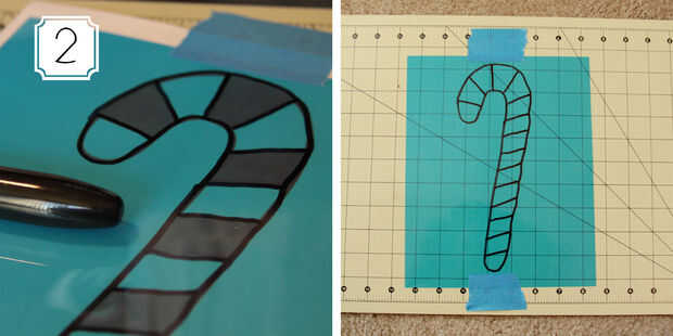 Traza la imagen en el espacio en blanco de la plantilla. Luego retire la imagen y cinta adhesiva sobre la estera para el siguiente paso.