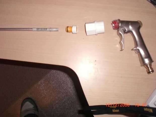 Sorprendentemente encontré un componente de PVC que se atornilla exactamente sobre la pistola pulverizadora.