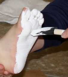 Una vez que el pie está cubierto (utilice un pincel o una brocha de esponja) con el paso de los estudiantes en el centro de su corazón.