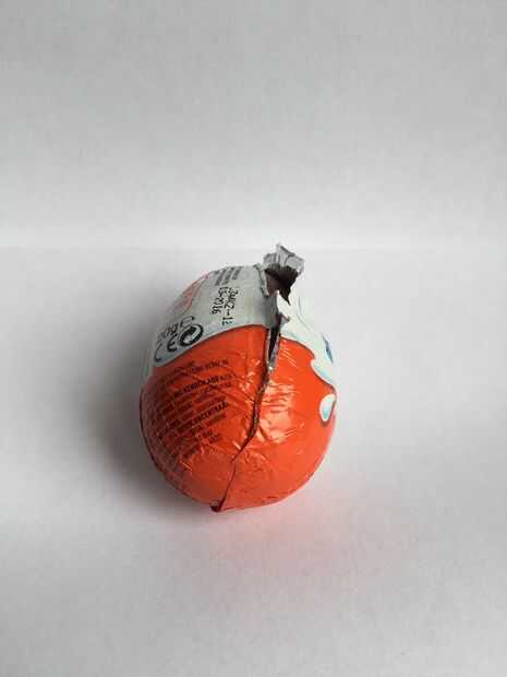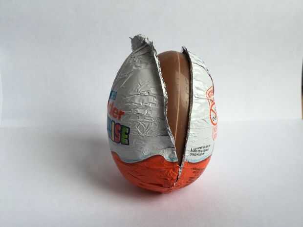 Comience suavemente despegando el papel de aluminio del huevo. Tómese su tiempo y tenga cuidado de no dañarlo! Cuando usted piensa que usted puede sacar el huevo de chocolate, no hay que seguir peeling, pero sólo con cuidado sacar.