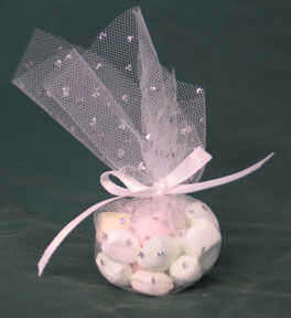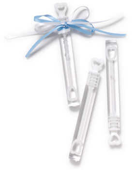 Lo que hice en mi boda fue que tanto una pequeña botella de burbujas y un saco de mentas con una etiqueta atada a la parte superior con un arco que empareja nuestros invitaciones (ver mi Instructable aquí:. La botella emparejado los programas que teníamos ya que ambos tenían corazones en la parte superior. que podría haber también hecho el frasco de burbujas con el mango de corazón demasiado, pero tengo mucho en las otras botellas.