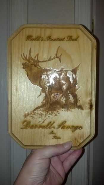 A continuación tomamos el archivo que guarda en el cortador del laser y doble había marcada la imagen. Luego "Imprimir" la imagen en la madera. Usted puede ir a www.techshop.ws para ver las diversas herramientas y equipos que están disponibles para su uso en diferentes lugares. Ella estaba tan emocionada ver la creación que hizo poner en la madera. La imagen que eligió tenía un montón de variaciones que salió increíble! Llevó a casa y decidió dejar el color natural de madera para permitir que las variaciones Mostrar y utilizado un spray de poliuretano para sellar la madera. El proyecto salió increíble y ella no puede esperar para dar a su papá!